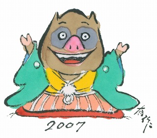 猪の絵は、「まんが」のコーナーで漫画を書いていただいているさとう有作さんの私への年賀状用に頂いたものです。多くの人たちに支えられての私、あき葉です。